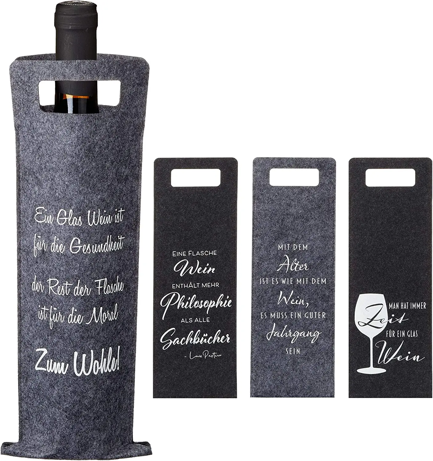 Túi đựng chai rượu bằng vải nỉ không dệt màu đen xám dài thân thiện với môi trường có thể tái sử dụng của Amazon Travel | |