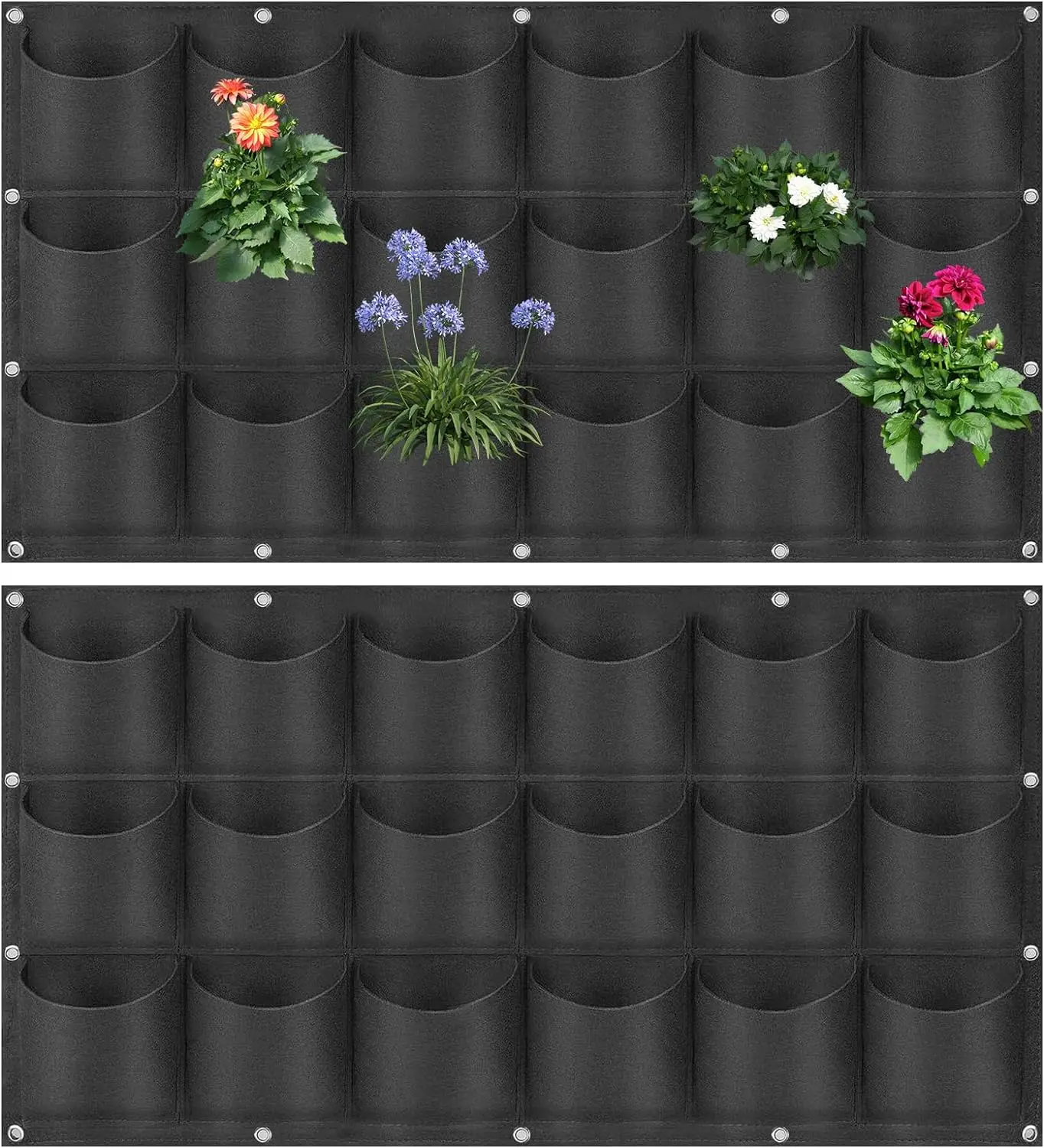 Tính năng | Túi trồng cây treo thẳng đứng có thể trồng cây, hoa, rau, cây mọng nước và các sản phẩm khác. Đồng thời, có thể dùng để trang trí tường ở nhiều nơi như nhà ở, tường trong nhà hoặc ngoài trời, văn phòng, vườn, ban công, sân, v.v. |