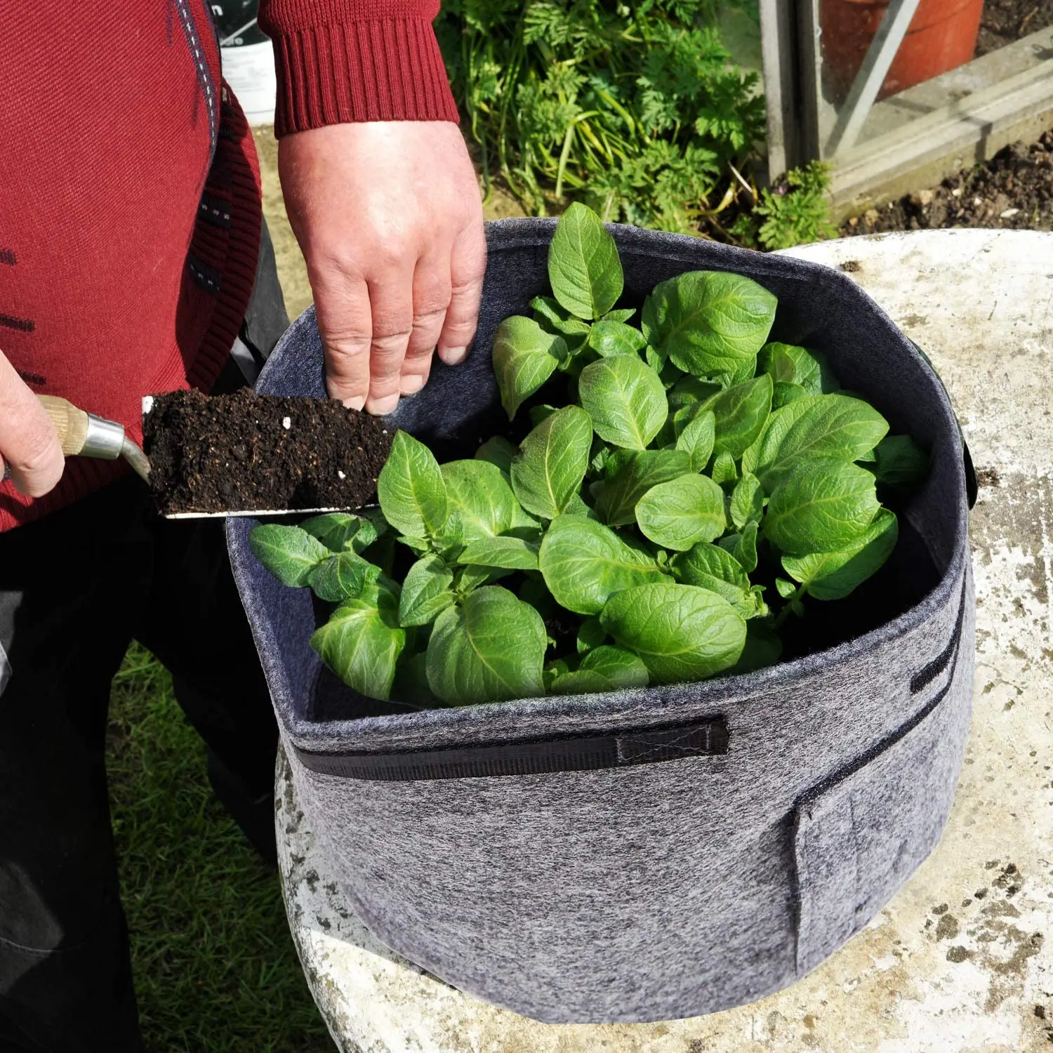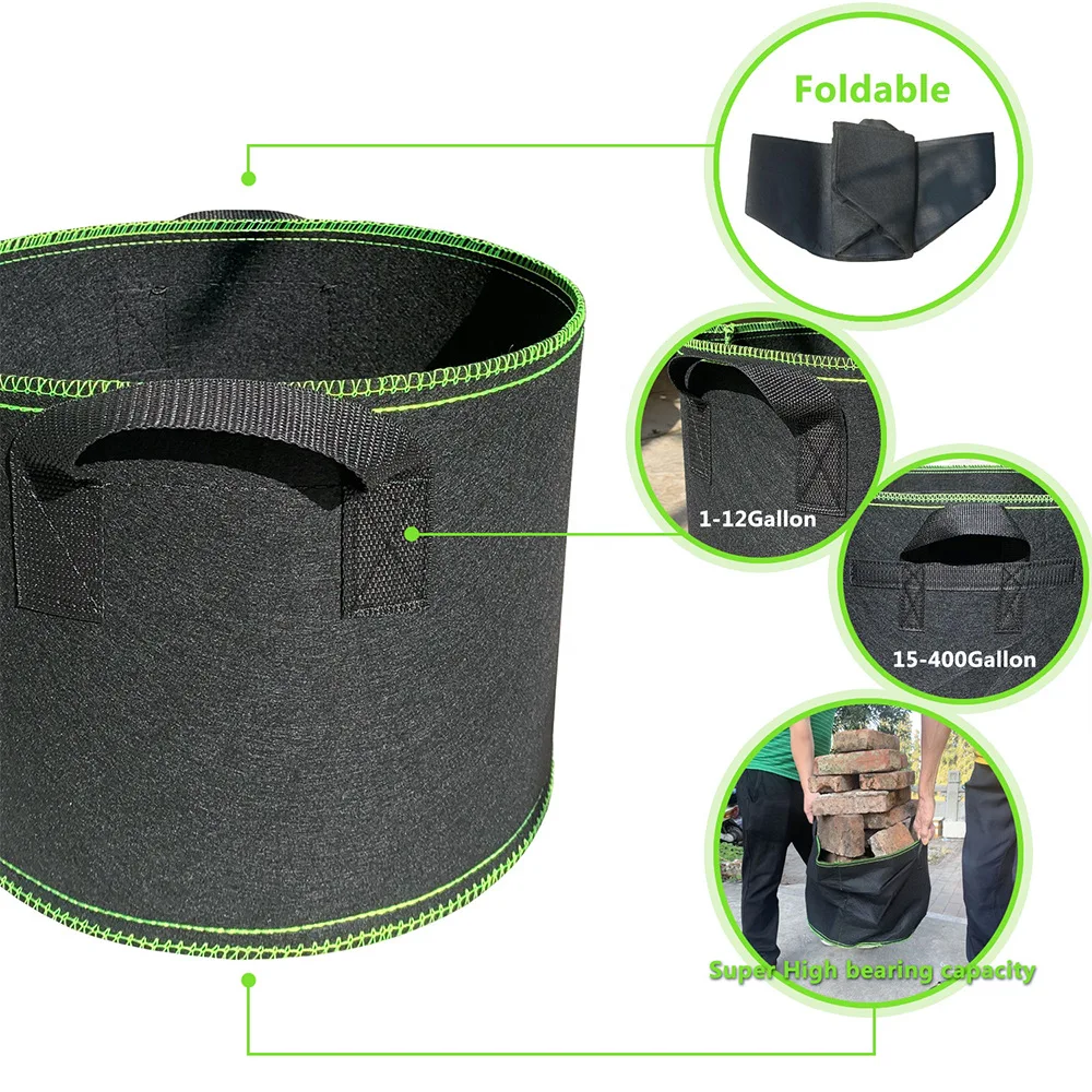 Giá Chậu trồng cây bằng nỉ chống chịu thời tiết 10 gallon 5 gói dày nhất Tay cầm gia cố không dệt Túi sục khí trồng cây | |